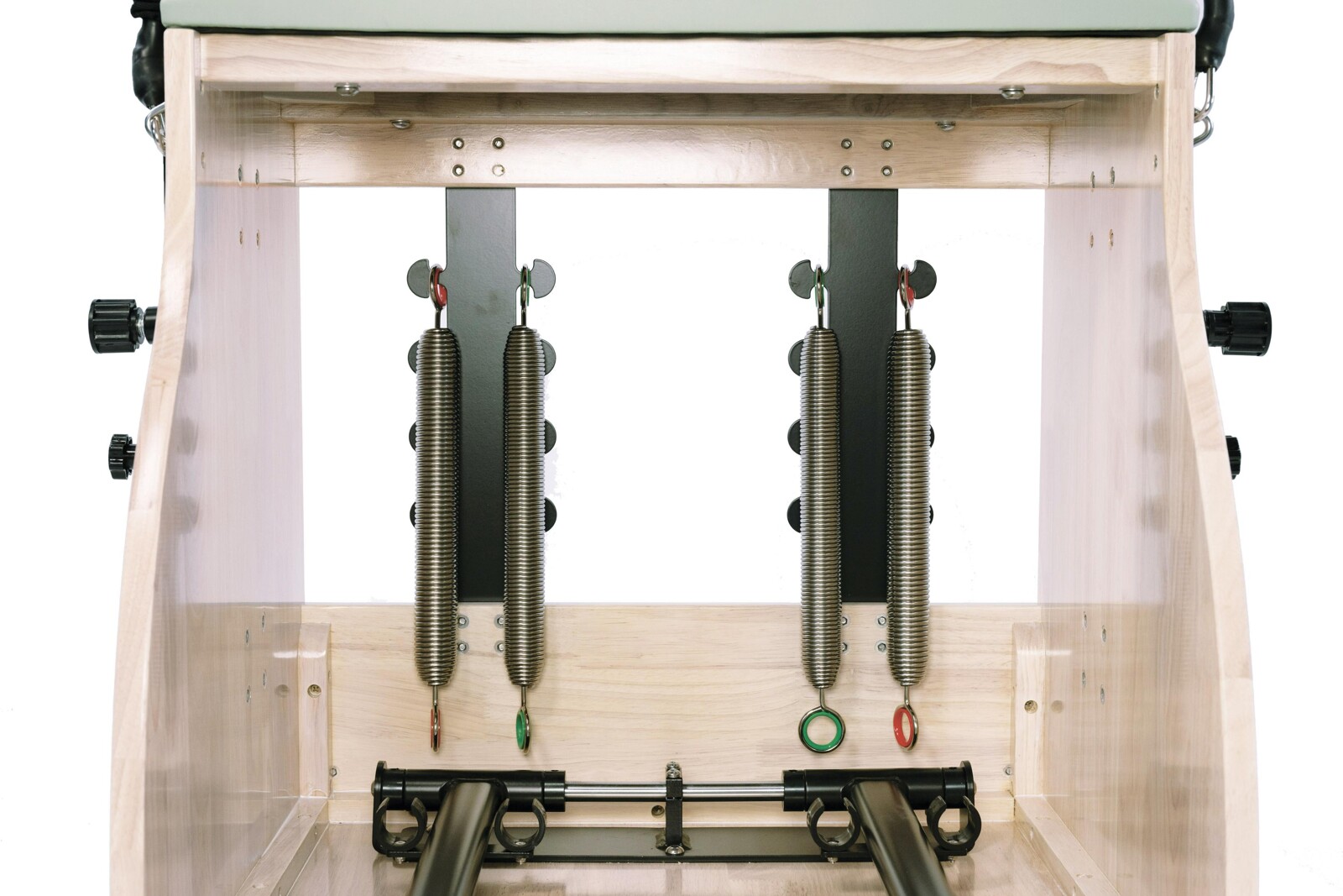Profesjonalne krzesło do pilatesu z drewnianą ramą, regulowanymi uchwytami i niezależnymi platformami