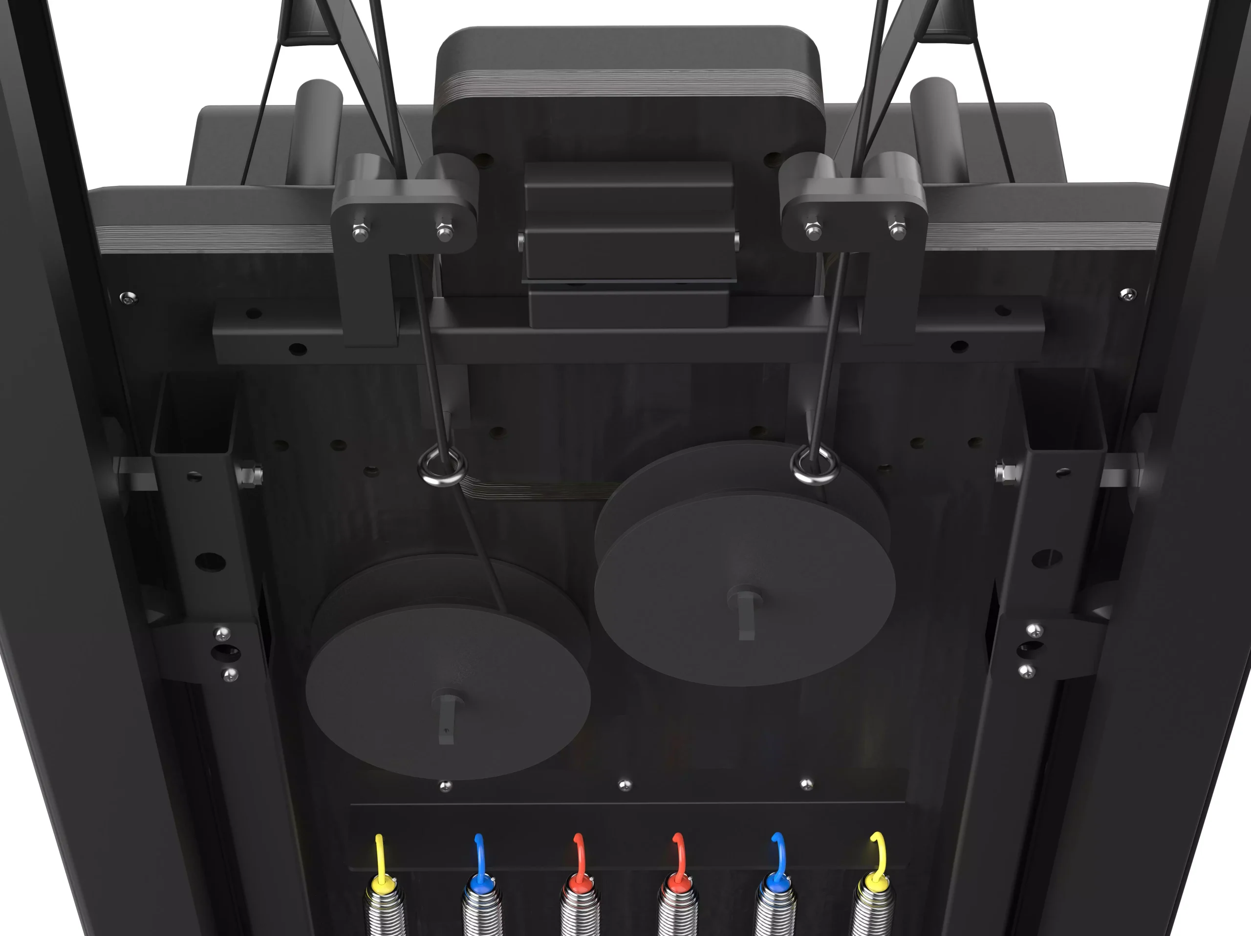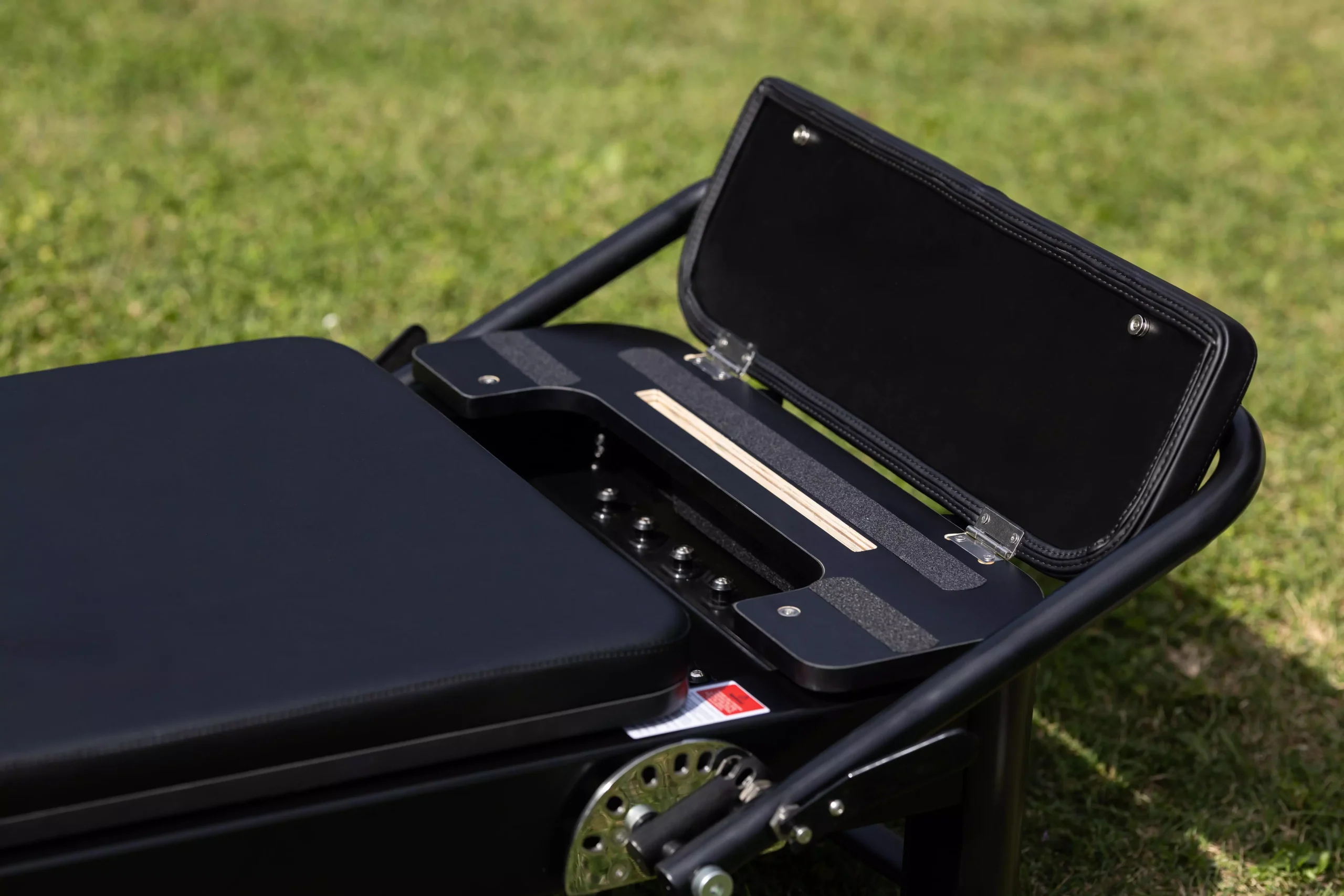 W standardzie znajduje się automatyczny system lin, uchylna platforma antypoślizgowa, a także komplet akcesoriów: box i jumpboard. Reformer pozwala na trening zgodny z naturalną biomechaniką i spełnia rygorystyczne normy EN ISO 20957 (klasa S).