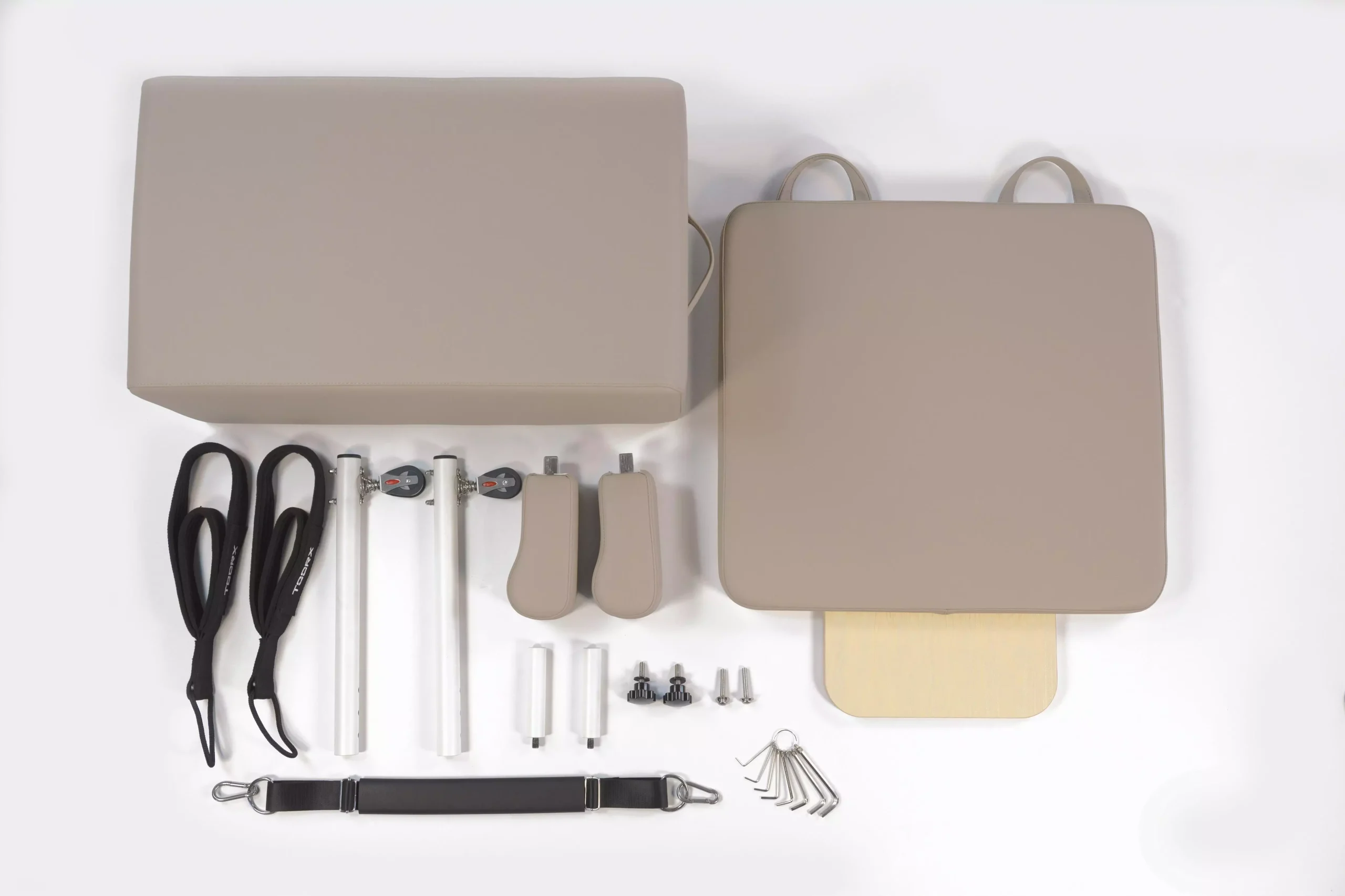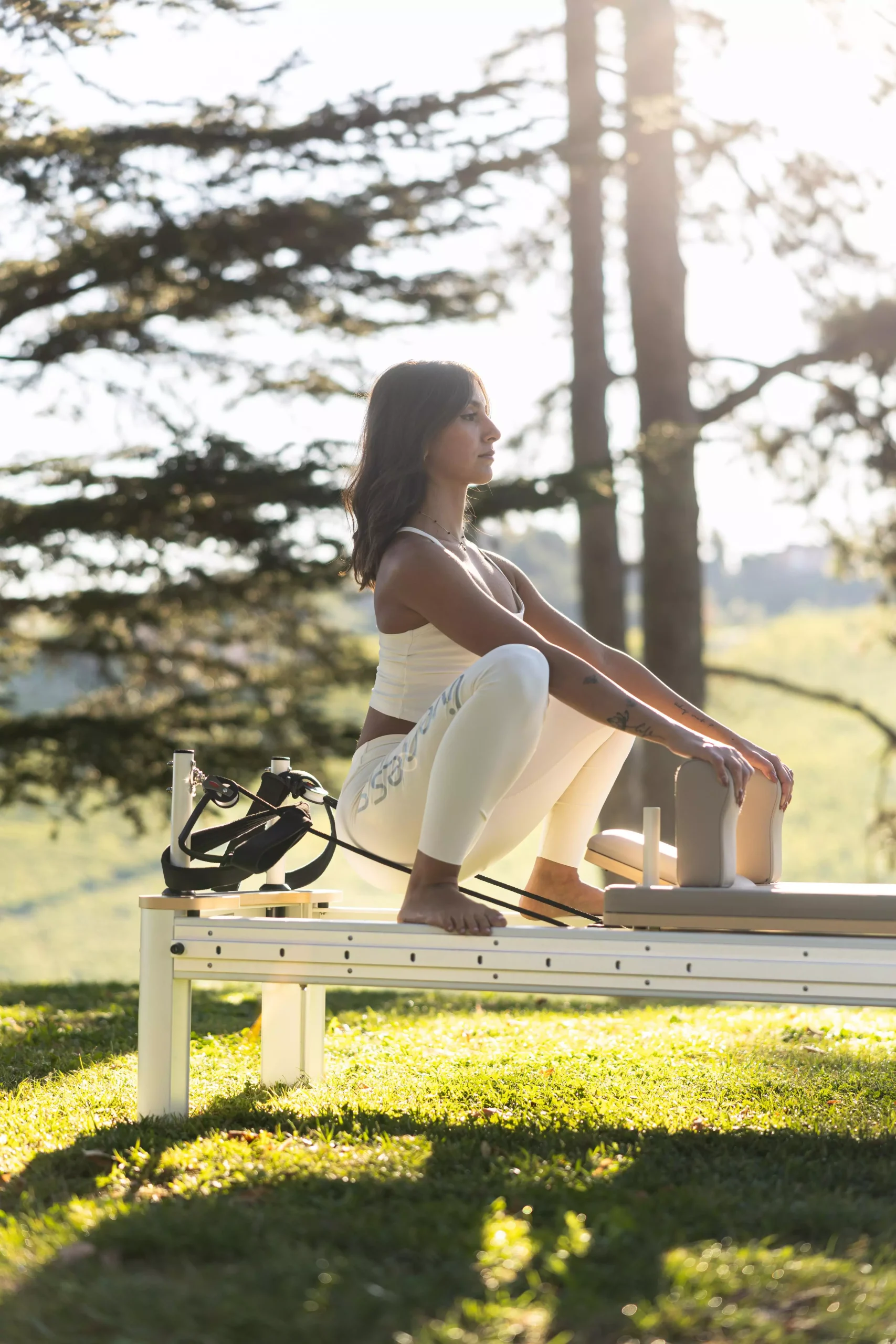 Profesjonalny reformer do pilatesu w kolorze Moon&Sand – płynna praca, precyzyjna regulacja i komplet akcesoriów