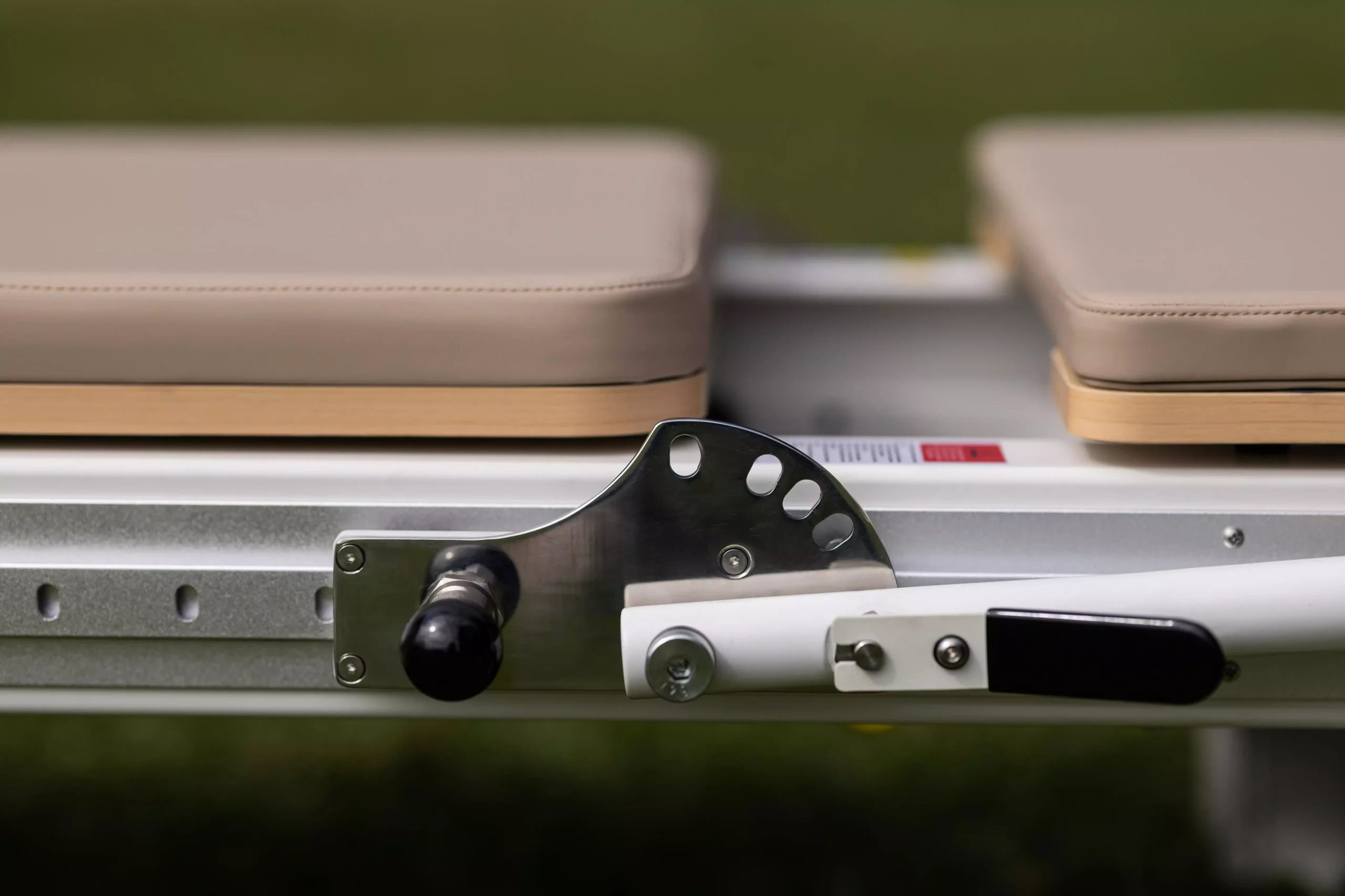 Urządzenie zostało wyposażone w drążek na stopy z systemem regulacji – pięć poziomów kątowych oraz dziewiętnaście poziomów poziomych poza ramą. Dzięki temu reformer można dopasować do potrzeb każdego użytkownika. Codzienną pracę usprawnia automatyczny system lin i uchylna, antypoślizgowa platforma z łatwym dostępem do sprężyn, co znacznie przyspiesza zmianę konfiguracji.